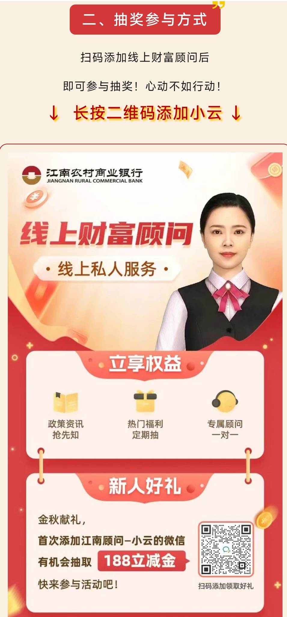 江南农商银行添加云顾问抽奖和月月刷活动