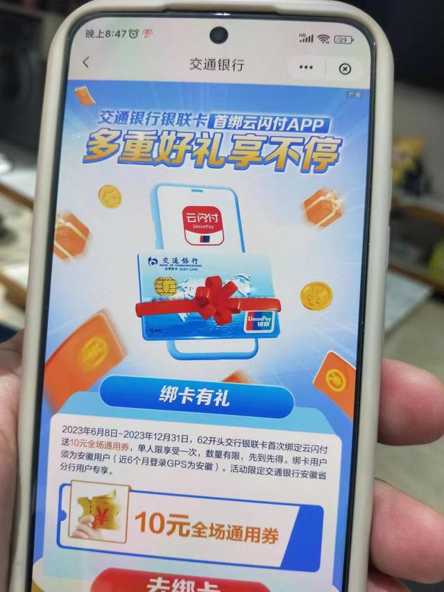 云闪付安徽首邦交通卡,十元云闪付立减金