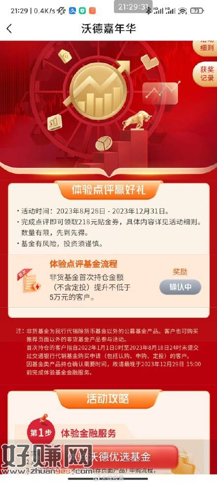交通银行受邀:交通银行APP搜索抓住好基会 买5万 理财搜015822七天零申购费 确认后第二天领218支付券