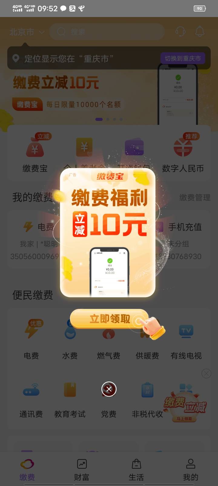 云缴费官方小程序和云缴费APP缴费宝用户专享立减10