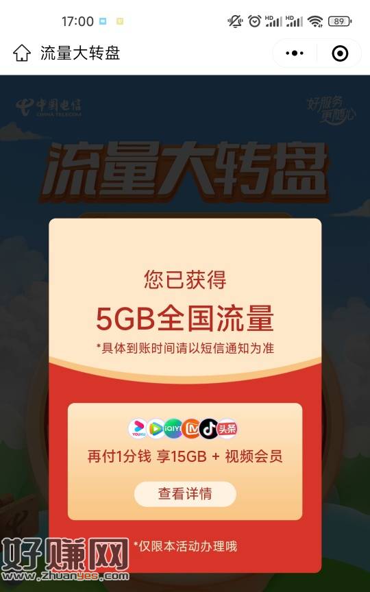江苏电信领流量,不知道其他地区能不能领,你们试试,我是江苏手