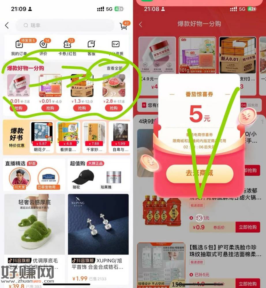 番茄小说app-我的-商城-看看有没有这个或者直接弹窗 5无门槛
