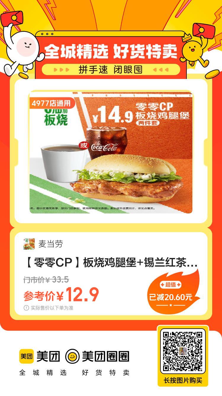 12.9,麦当劳|【零零CP】板烧鸡腿堡+锡兰红茶两件套
