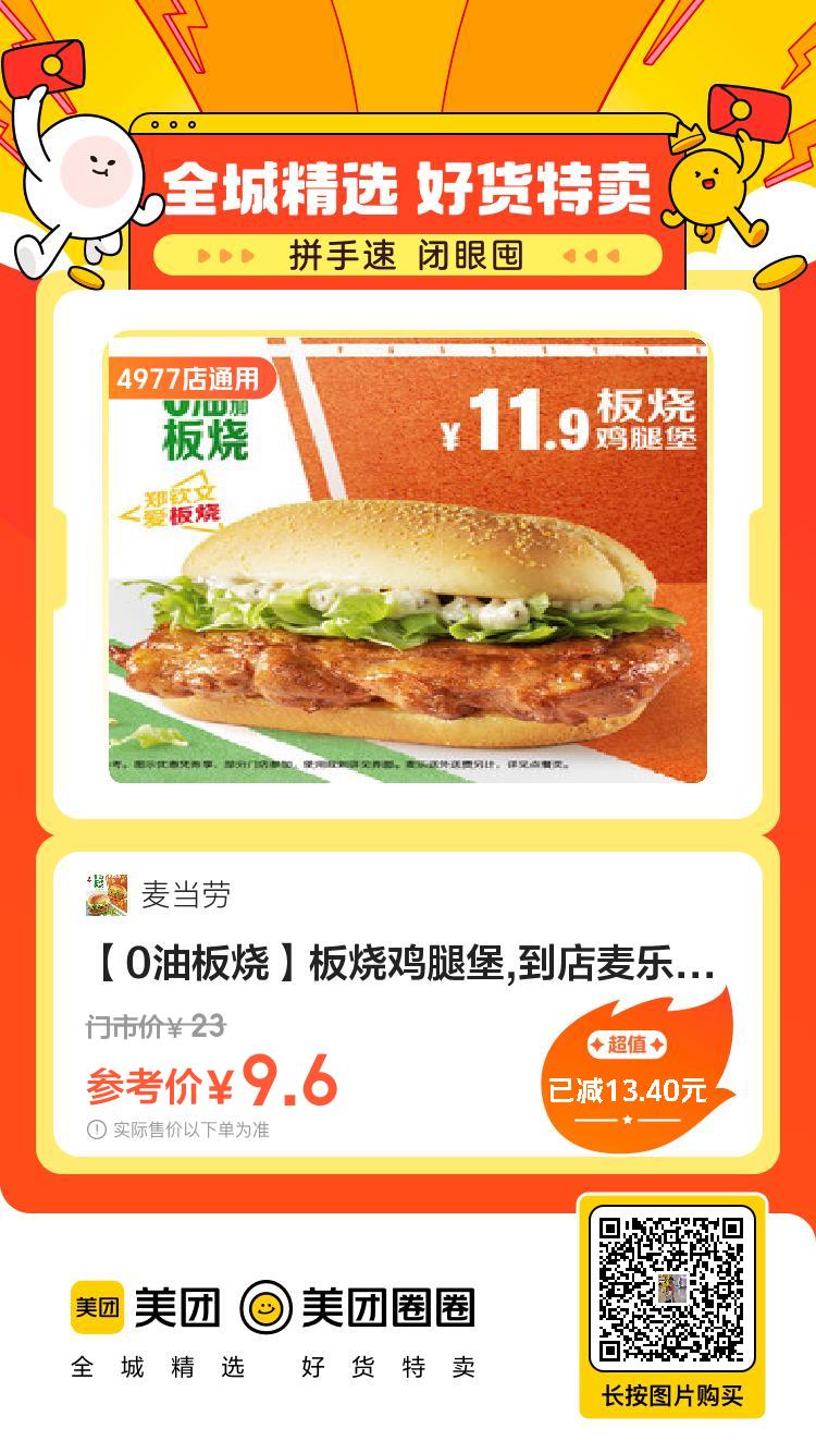 9.6,麦当劳|【0油板烧】板烧鸡腿堡