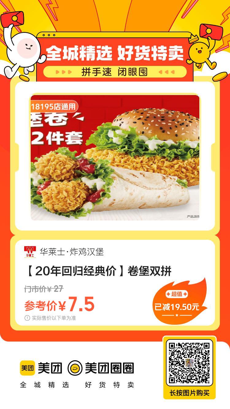 7.5,华莱士·全鸡汉堡|【20年回归经典价】卷堡双拼