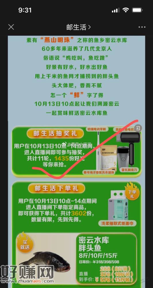 邮生活直播间 10点-14点 共11轮抽奖 有兴趣留意