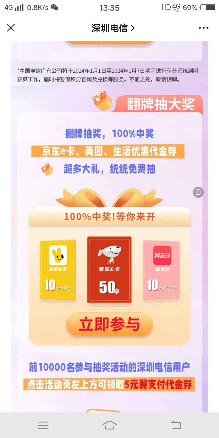 深圳电信公众号推文翻牌抽大奖活动,可以翻牌两次,不限电信移动联通拉满,2元生活券可以买e卡抵扣2元