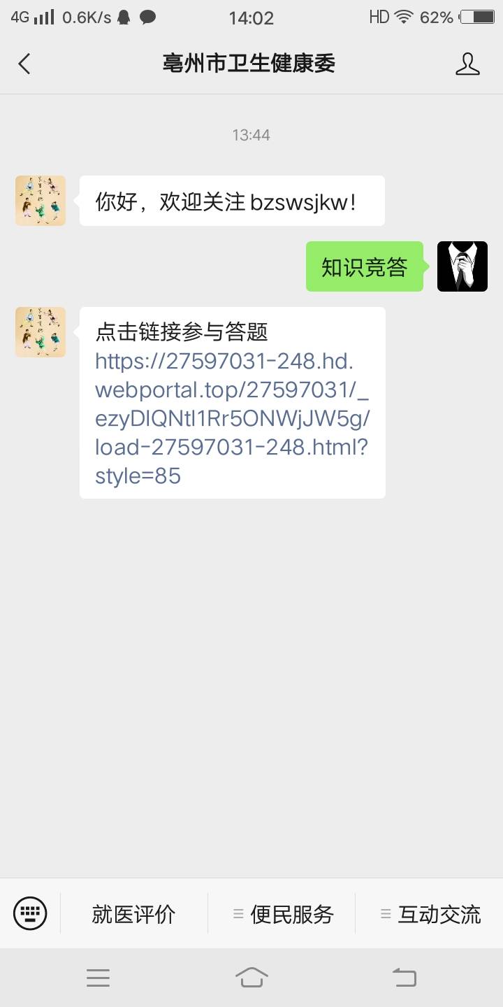 毫州市卫生健康委公众号回复知识竞答参与答题抽奖