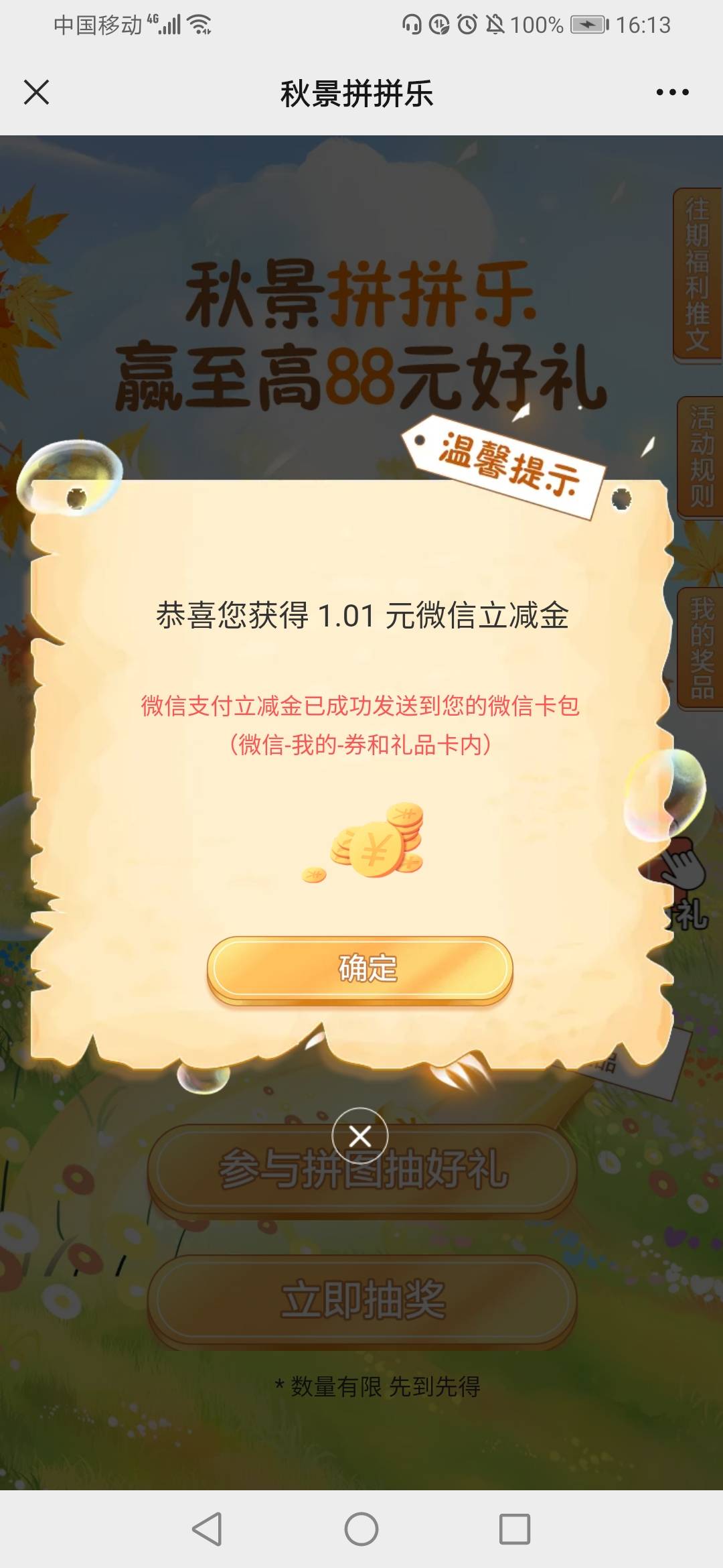 建行江苏公众号,进去拼图抽奖,立减金通用
