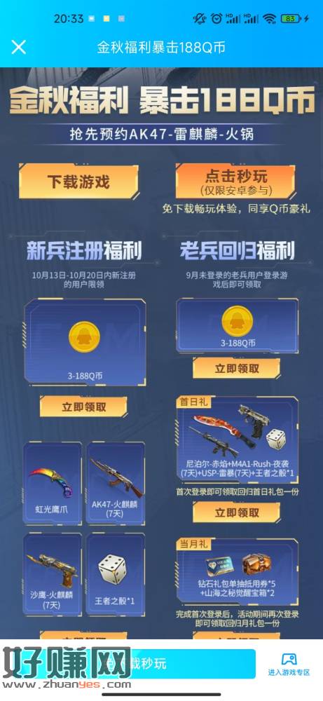 CF手游新或回归3Q币,回归的直接秒玩登陆一下就行