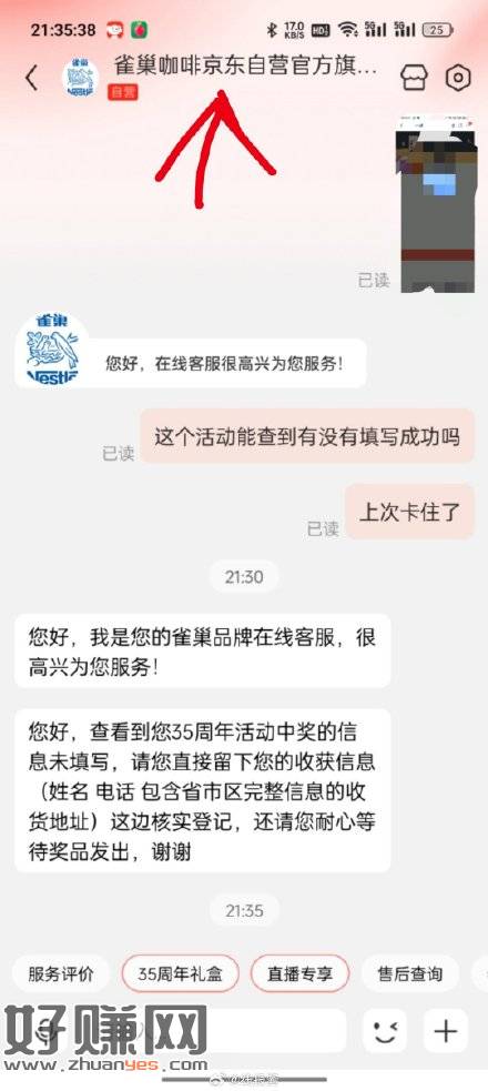 上次雀巢咖啡杯,比较卡没填上地址的,可以问下客服
