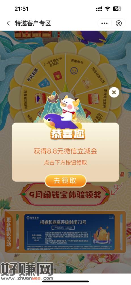 路径:生活-特邀专区-点进去 9月闲钱体验领奖 冲冲冲