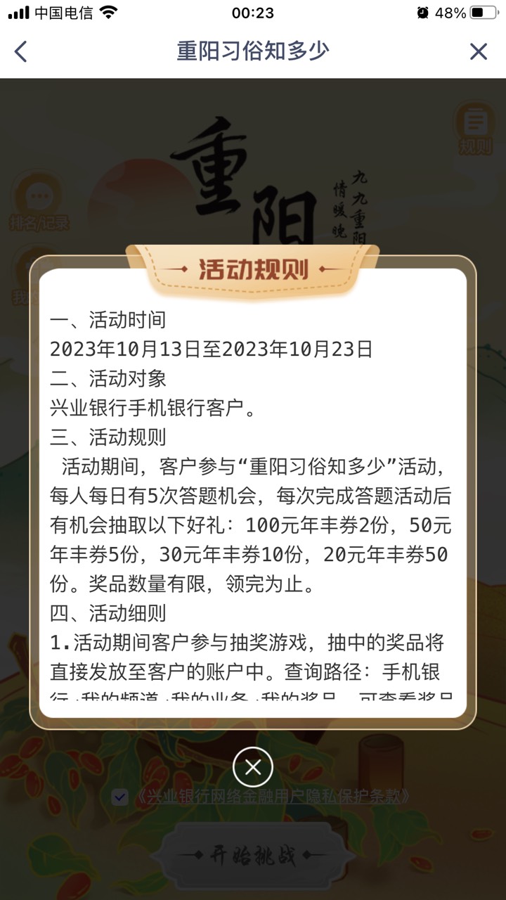 兴业银行重阳习俗知多少活动答题抽奖
