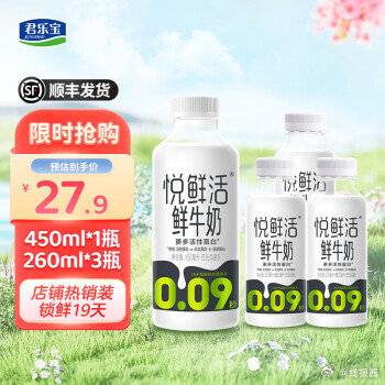 27.8,君乐宝 悦鲜活鲜牛奶450ml*1+260ml*3瓶