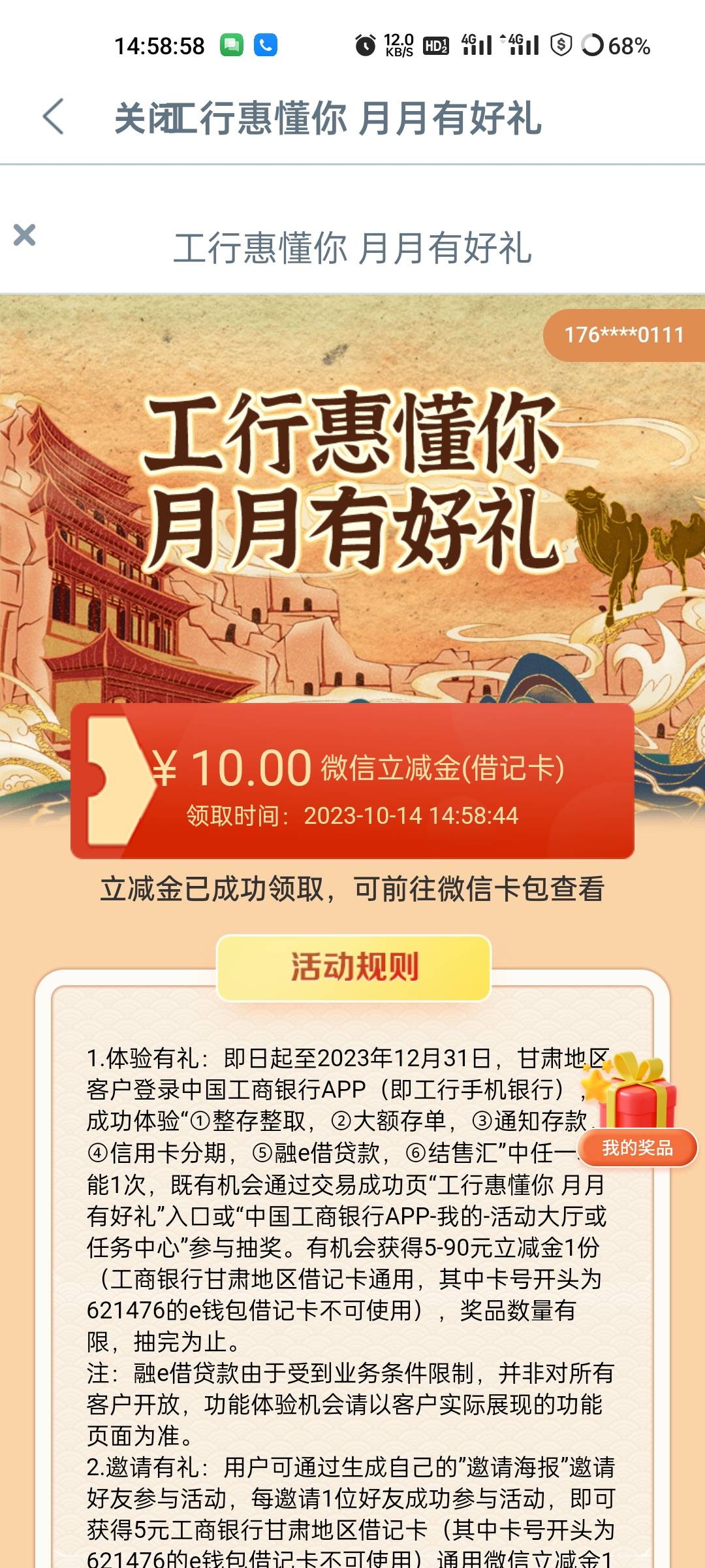 工行甘肃惠懂你月月有好礼抽奖,限实体卡
