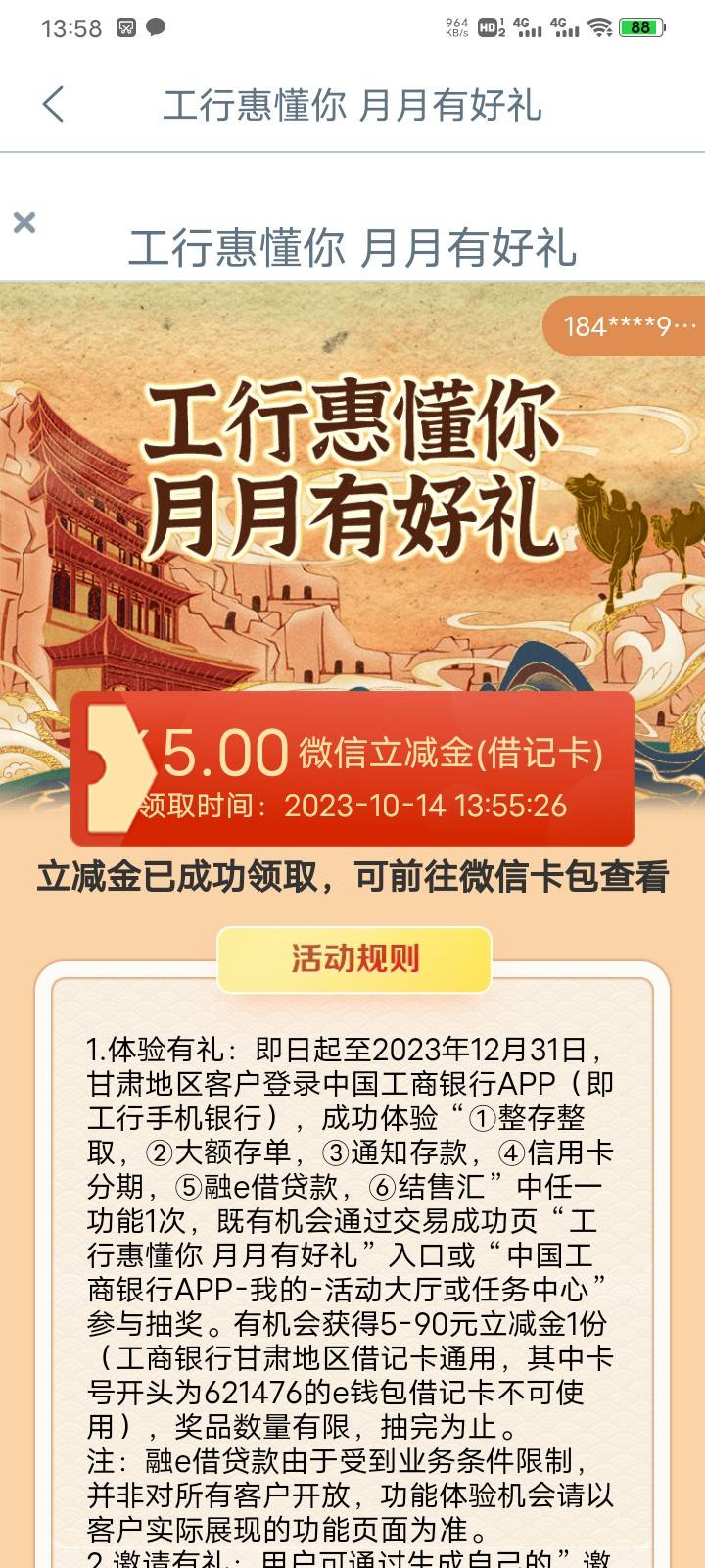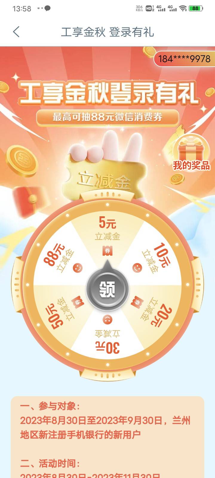 工行甘肃惠懂你月月有好礼抽奖,限实体卡