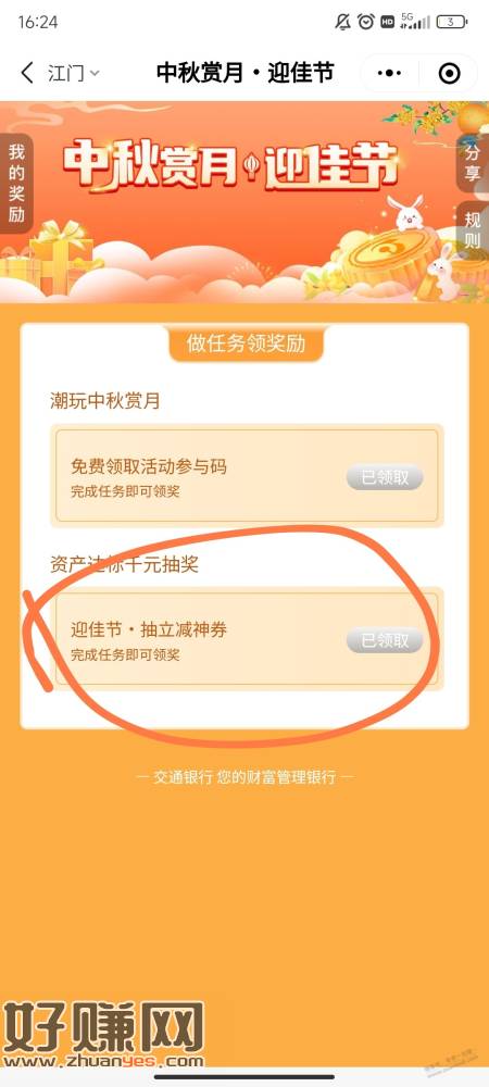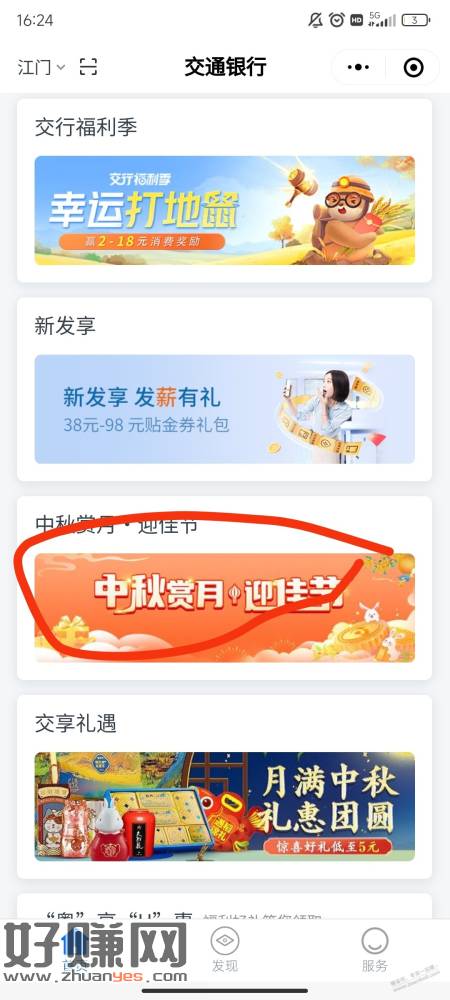 微信交通银行小程序,路径如图,抽中3贴金券写着商超券,跟普通贴金券一样用,快续费了求果