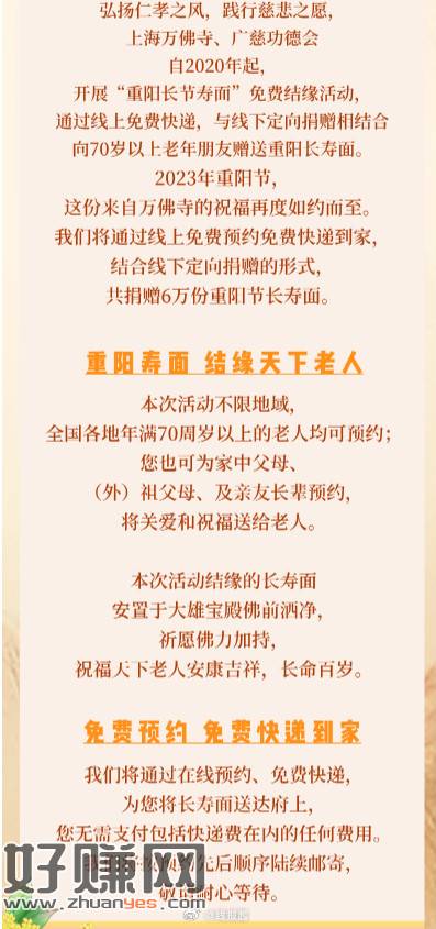 上海万佛寺2023年重阳节长寿面预约开启