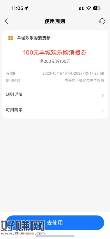 zfb搜索 羊城欢乐购 领200-100,需要定位是广州市