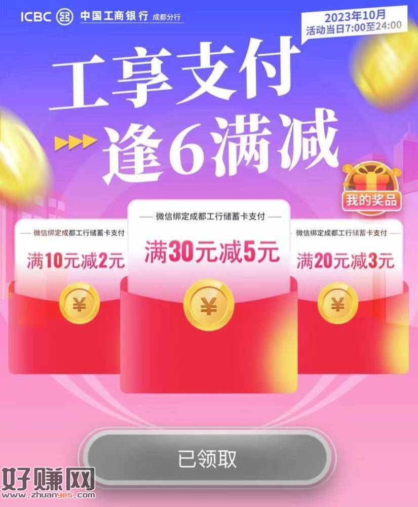 成都地区 工行APP搜索工行成都 找到 逢6满减 有 10-2 20-3 30-5微立减