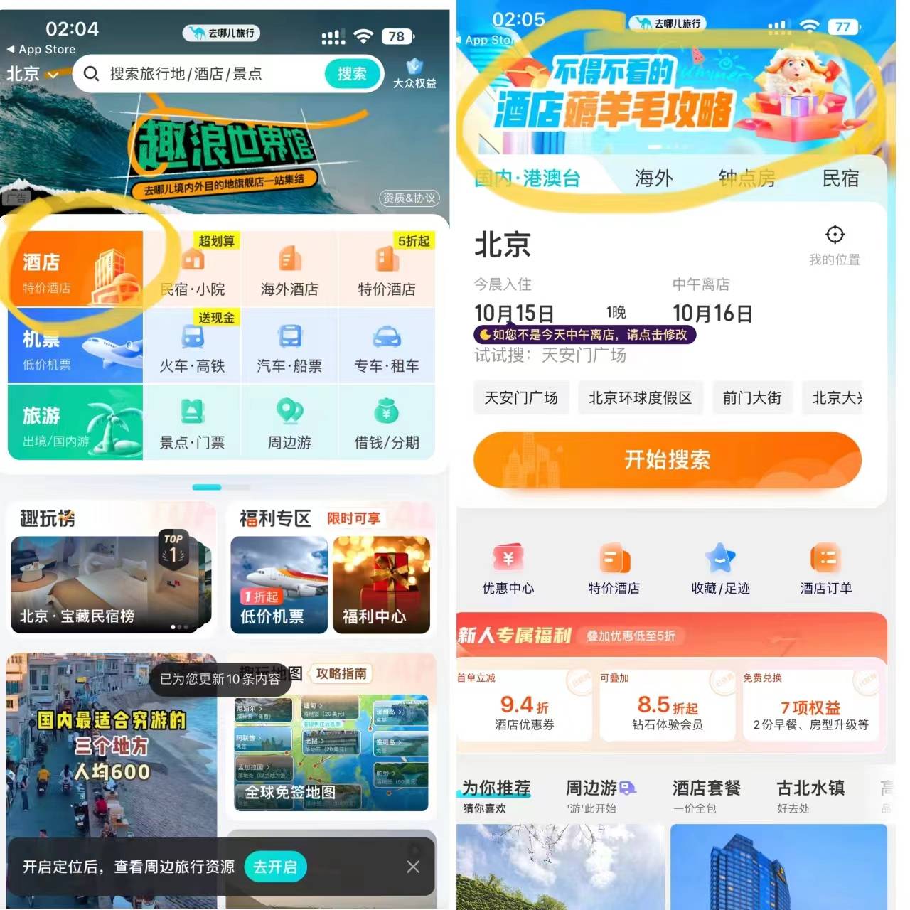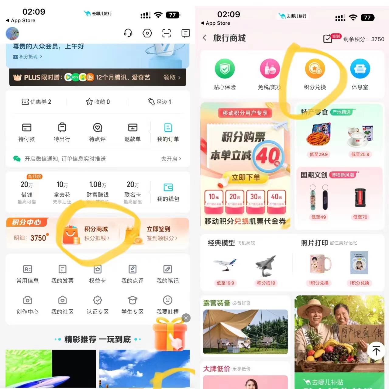 去哪儿旅行app 图一进去抽积分 图二进去兑换实物