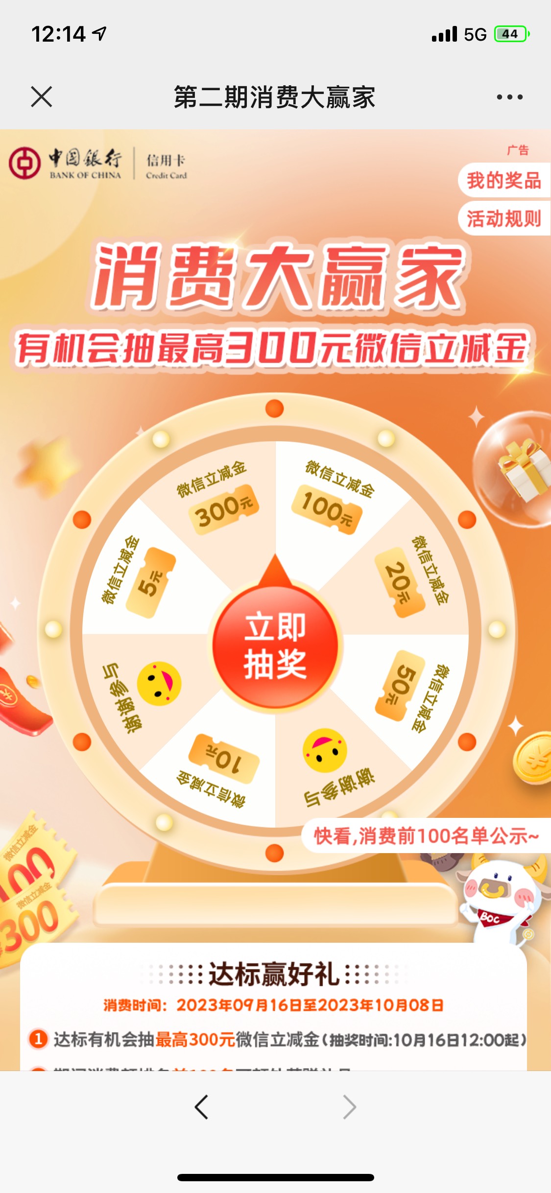 报名过上月深圳中行xyk消费大赢家的可以去抽了 喜提一个低保