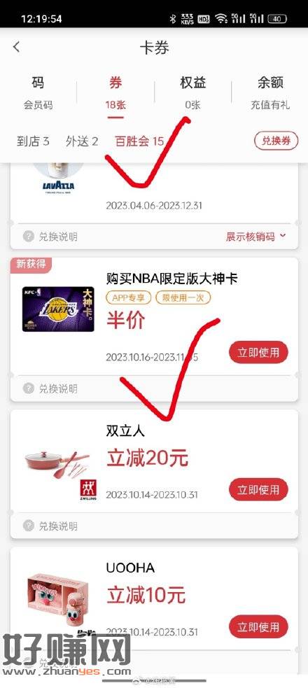 肯德基APP,卡券,点百神会,有张大神卡半价会员,