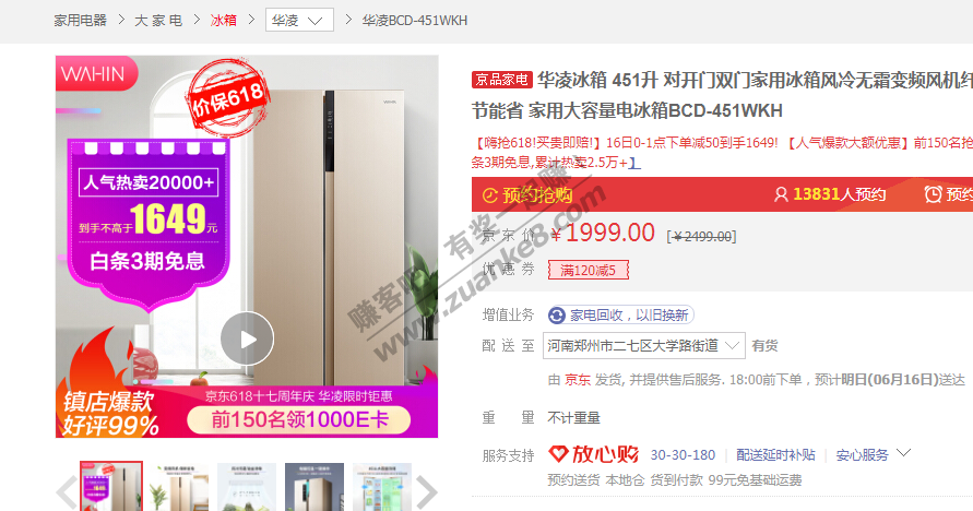 这款华凌冰箱本身比较便宜1700不到 而且前150名1000E卡 给需要冰箱的吧友