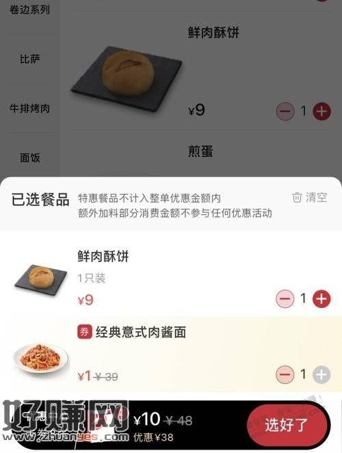 必胜客app点单满9元,意大利面1元享