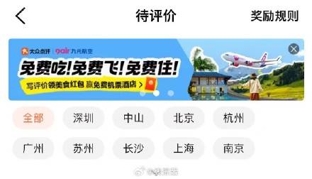 反馈,大众点评app,我的,待评价,顶部横幅的免费