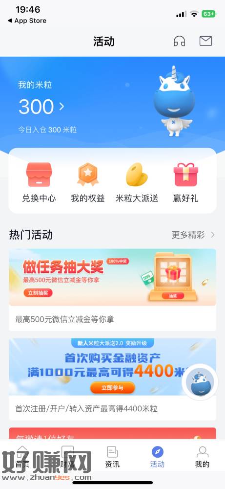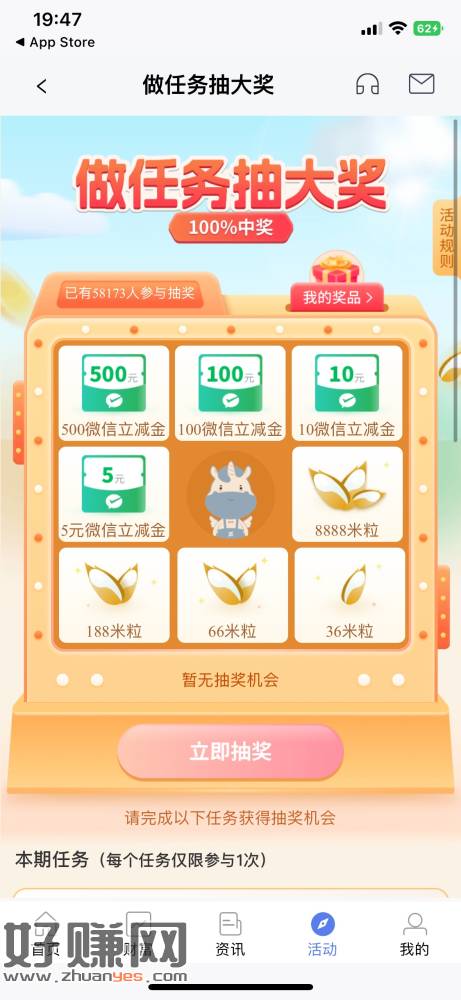 北京中关村银行app活动那边完成任务可抽奖 米粒可兑换ljj