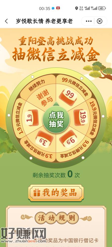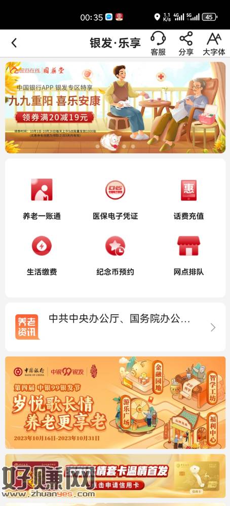 中行搜索银发专区/岁月歌长情/游乐广场/重阳节登高,玩游戏,抽立减金。