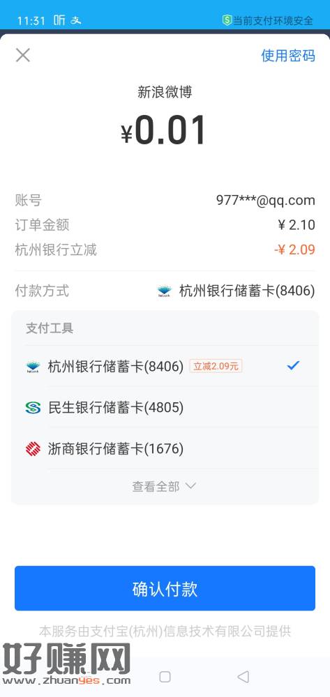 杭州银行立减,有卡的都去试试。几年前开的电子账户,最近一买东西直都显示有立减,不知道什么情况
