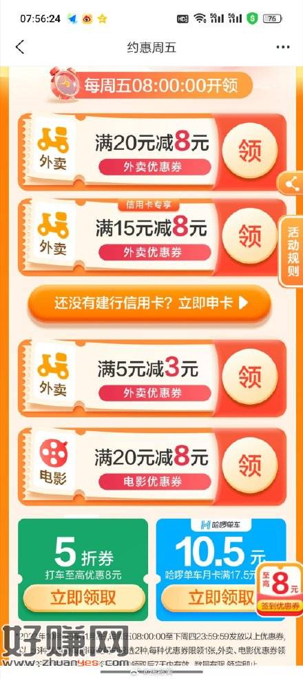 8点建行生活,外卖券有没有技巧,一直没抢到过