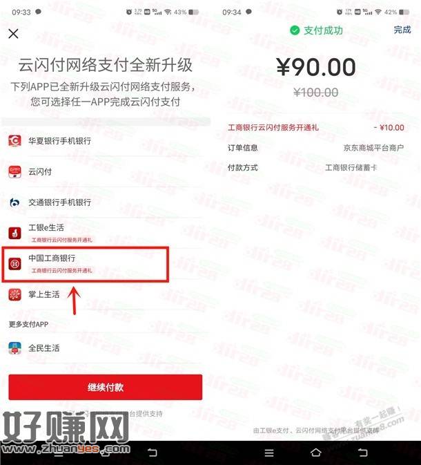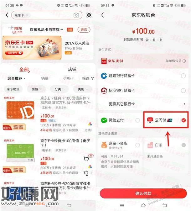 ysf90元购买100元京东e卡实体卡 需工商银行卡支付