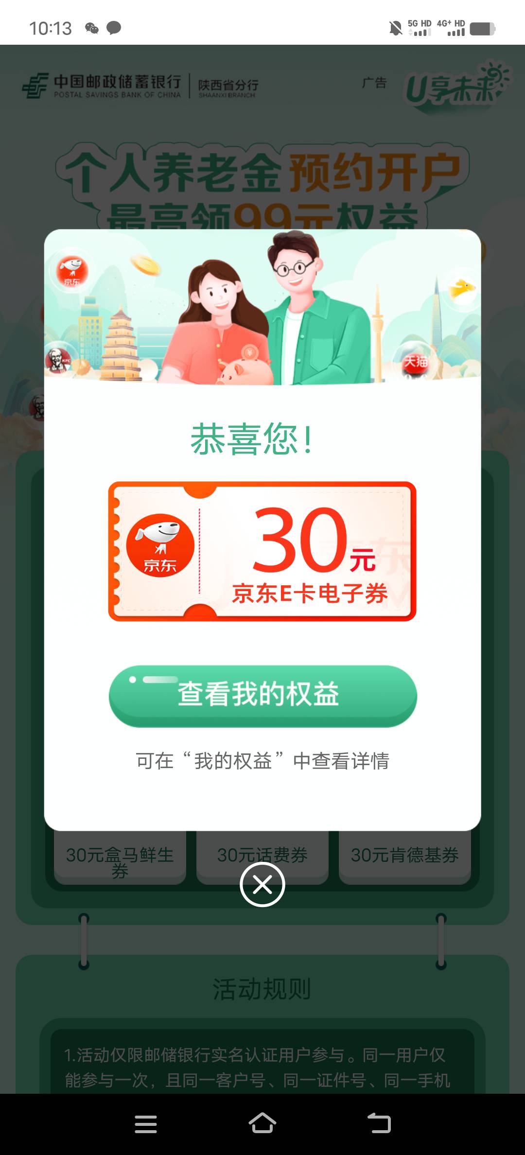 邮储陕西活动中心养老预约开户,我中30E卡。码放下面