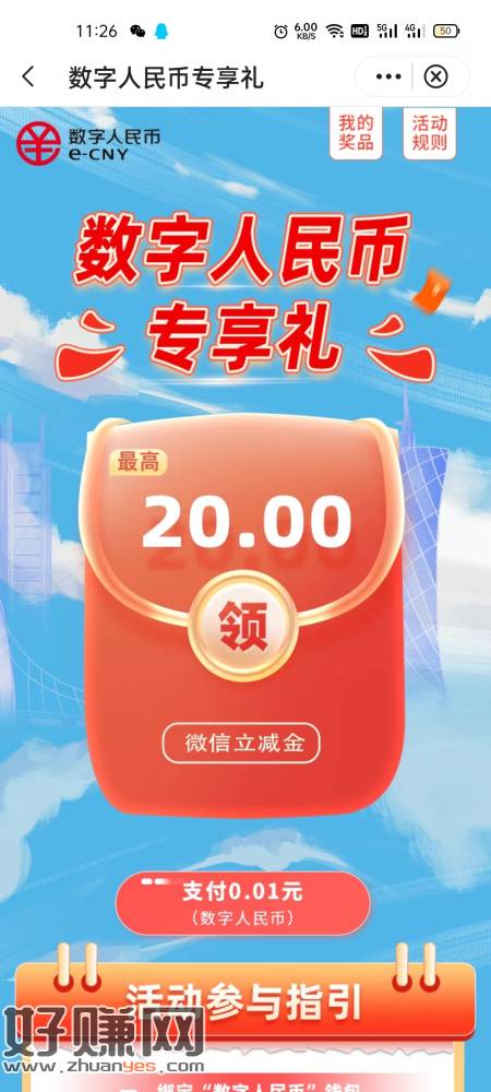 中行城市服务数字人民币体验专区数字人民币专享礼支付0.01抽微信立减金