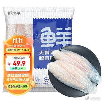 49.9,鲜京采 冷冻越南巴沙鱼柳去皮 净重1.5