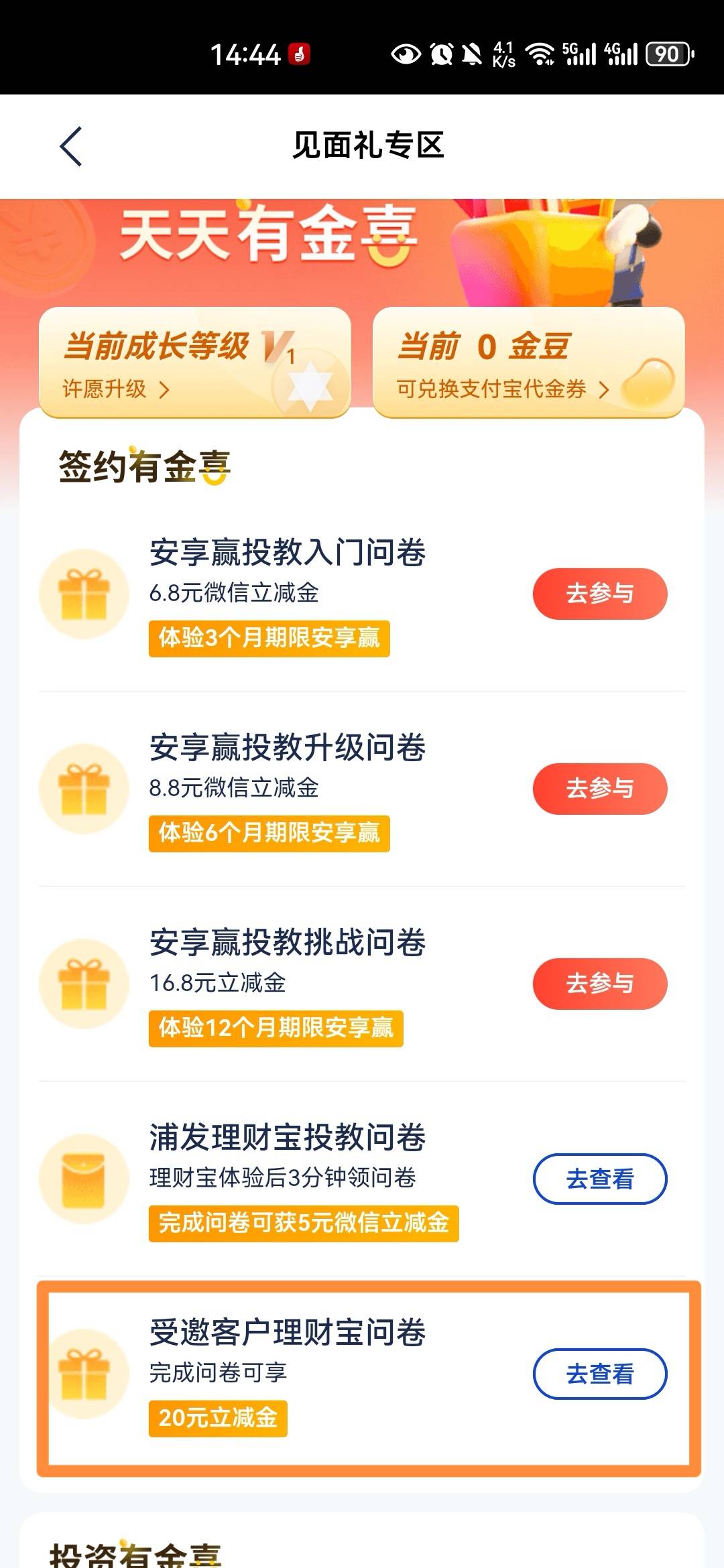 浦发见面礼,受邀客户理财宝问卷,特邀特邀,20ljj,我是浦发一类,没短信通知,老哥们自测