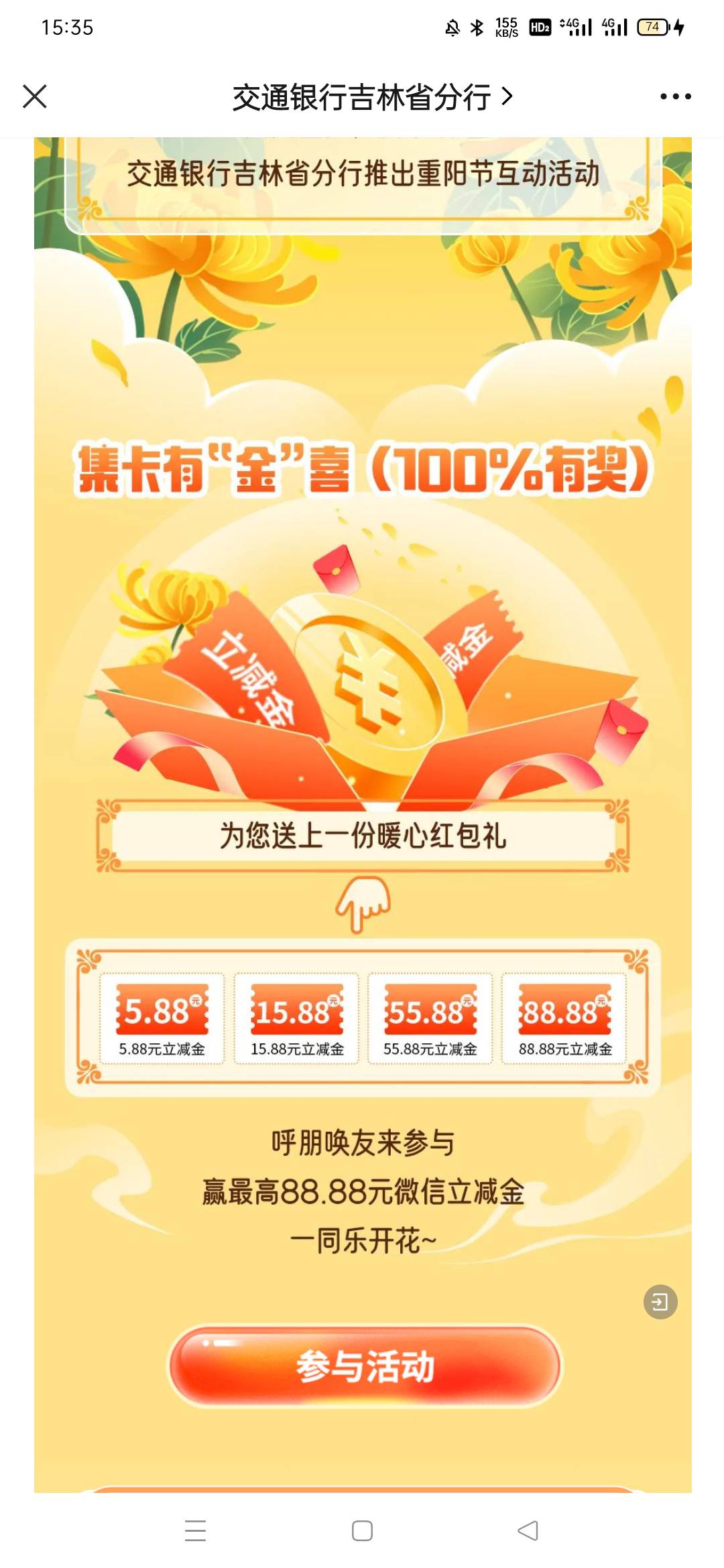 交行吉林公众号推文金秋十月欢度重阳抽奖,要吉林号