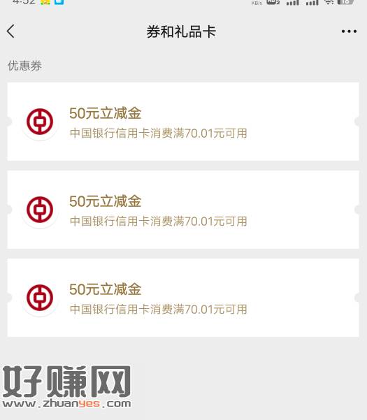 [ 中国银行 ]尊敬的客户,恭喜您获得我行“新客户办卡,消费满1