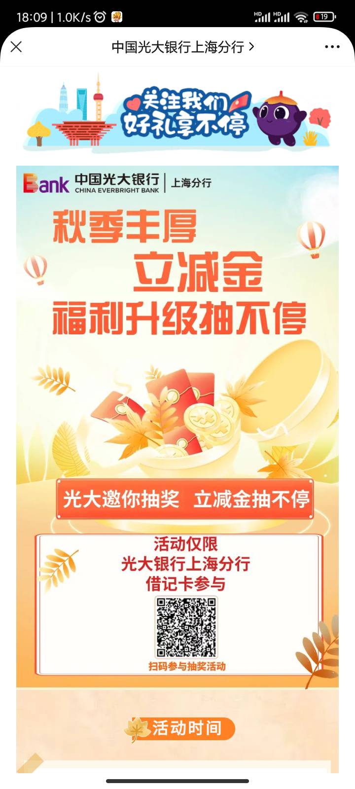 光大上海公众号推文,秋季丰厚立减金福利升级抽不停