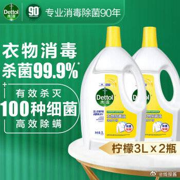 110.8元,滴露 衣物消毒液除菌液柠檬3L*2瓶 99.9%杀菌率