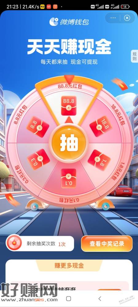 微博钱包横幅抽奖下面完成任务可以多抽一次