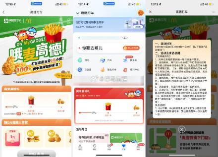 【高德打车领麦当劳免费鸡翅券】高德地图APP底部“打车”->领一下麦当劳任务->累计打车1/3次领0元麦当劳薯条/麦辣鸡翅