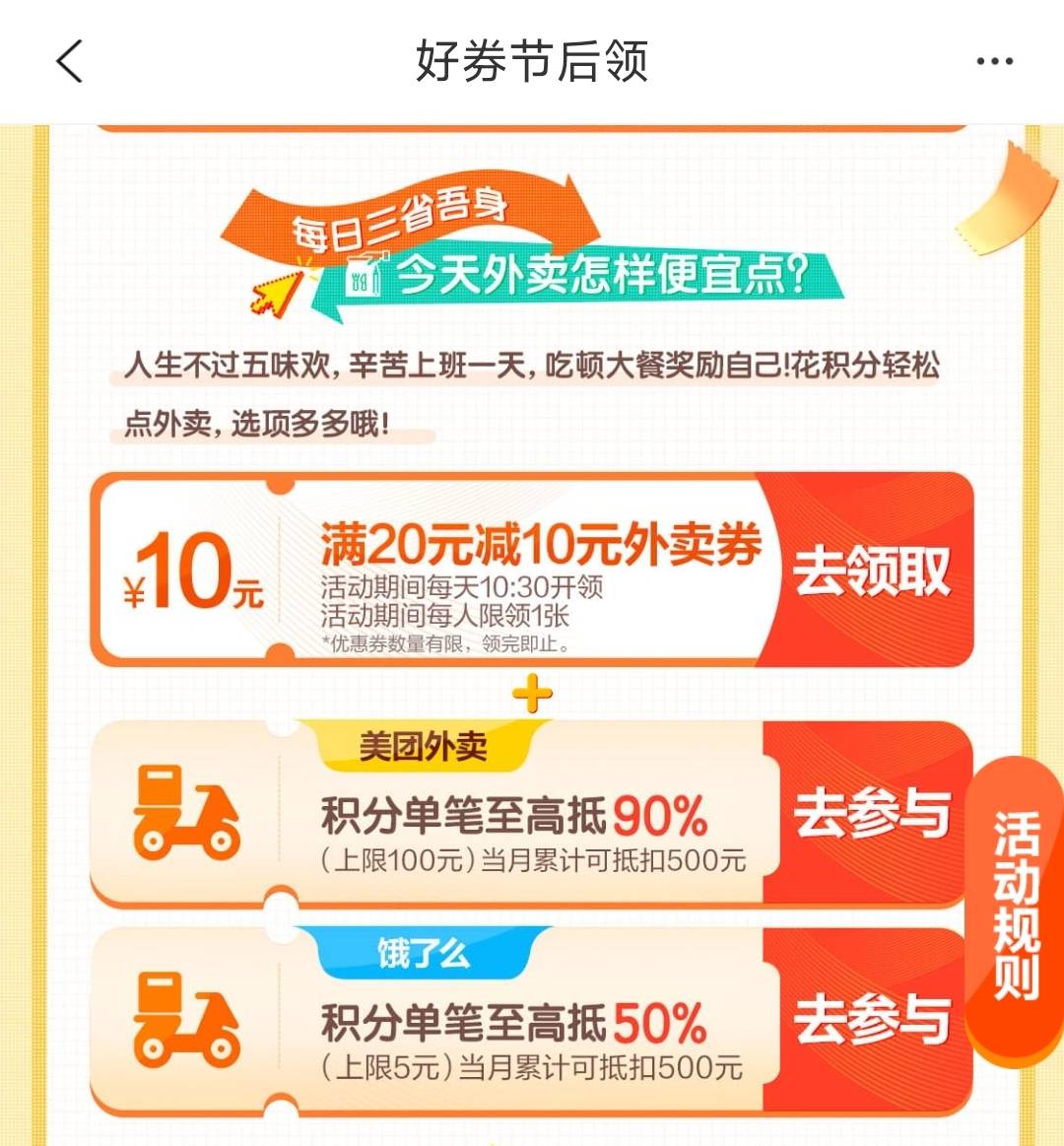建行生活横幅好券节后领,10:30抢购10元外卖券