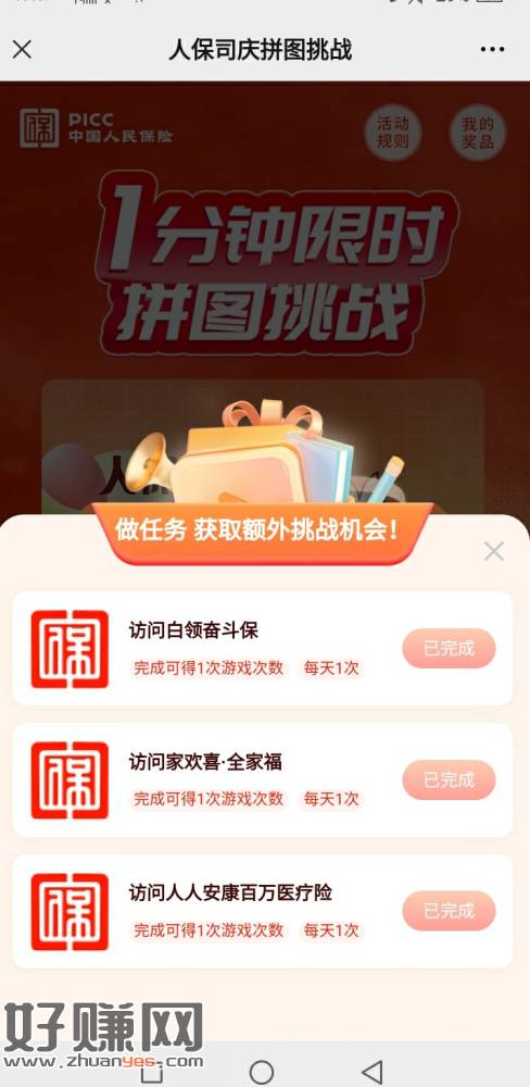 拼图抽、继续……每天 2+3 = 5次机会