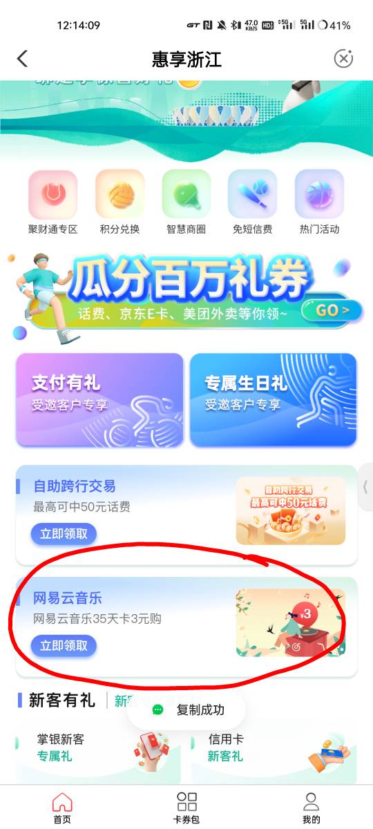 农行浙江城市专区-惠享浙江,3元购网易云音乐