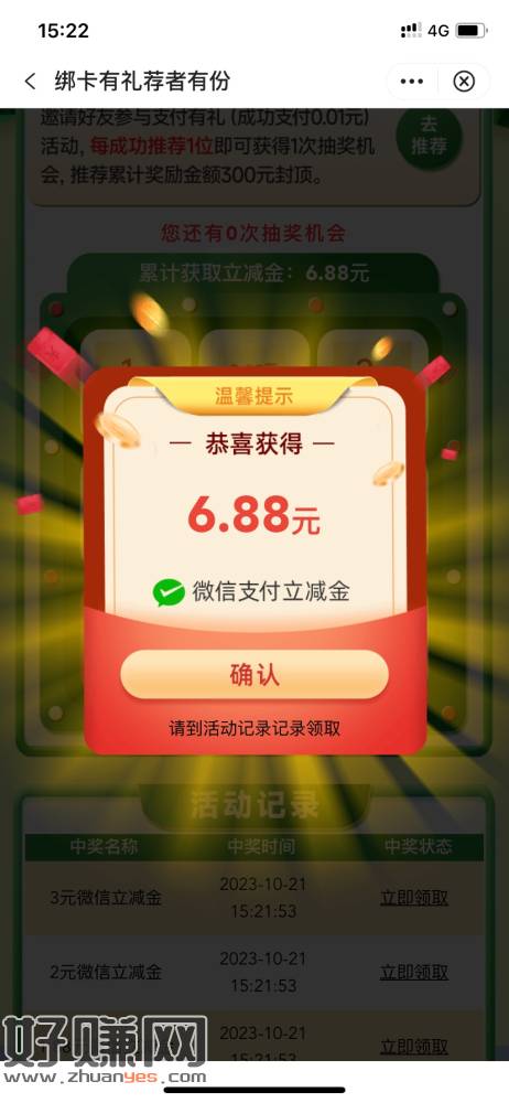 江苏中国银行生活,权益吧,立减金刚领6.8,分三次领到微信,充值深圳通一次后,在领第二个立减金,在充完领第三个立减金。