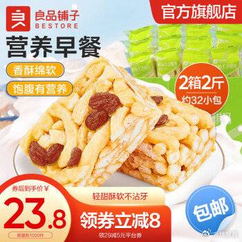 19.8,良品铺子 葡萄干沙琪玛500g*2盒